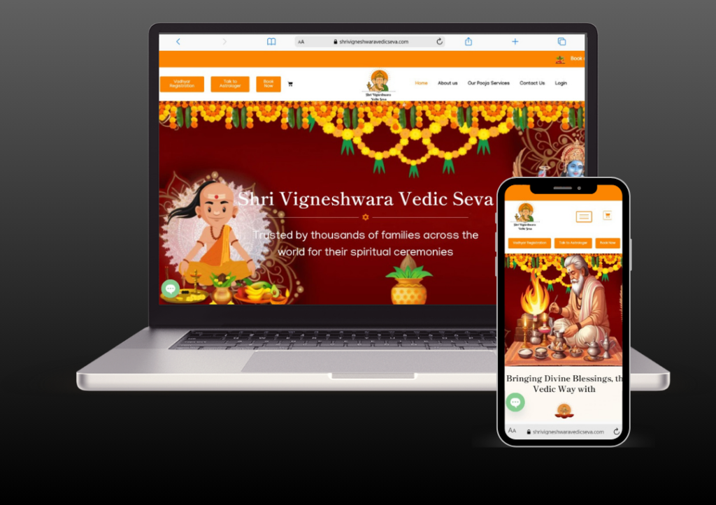 A modern eCommerce website for Shri Vigneshwara Vedic Seva, offering online poojas, spiritual services, sacred products, and seamless user experience.
